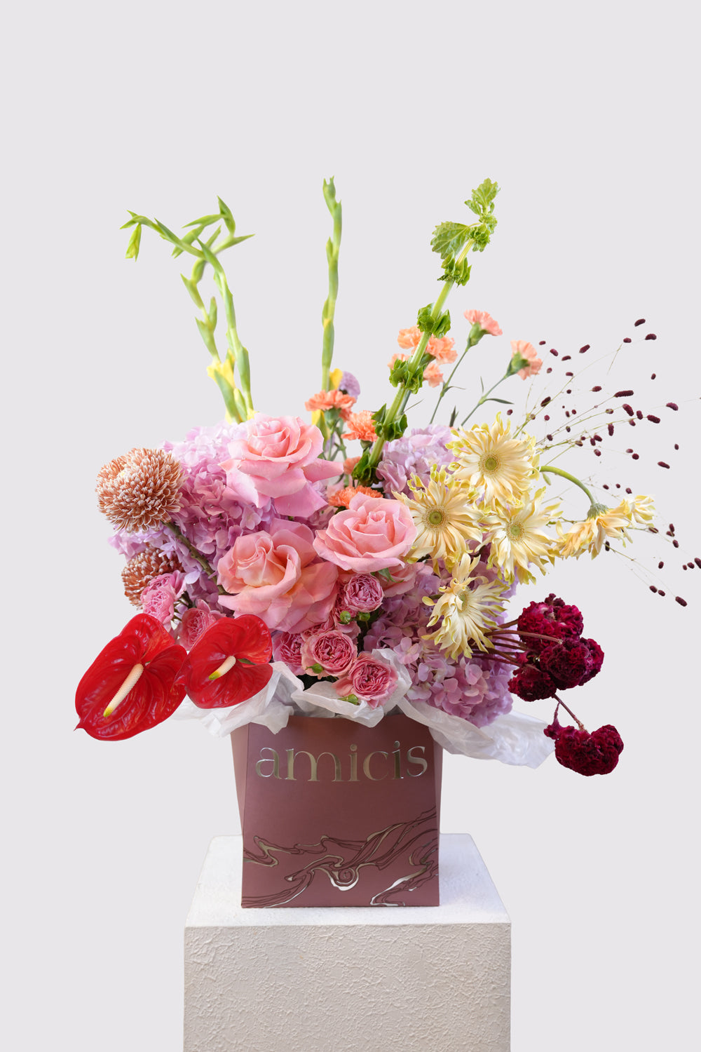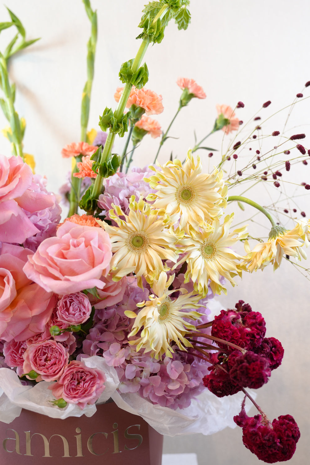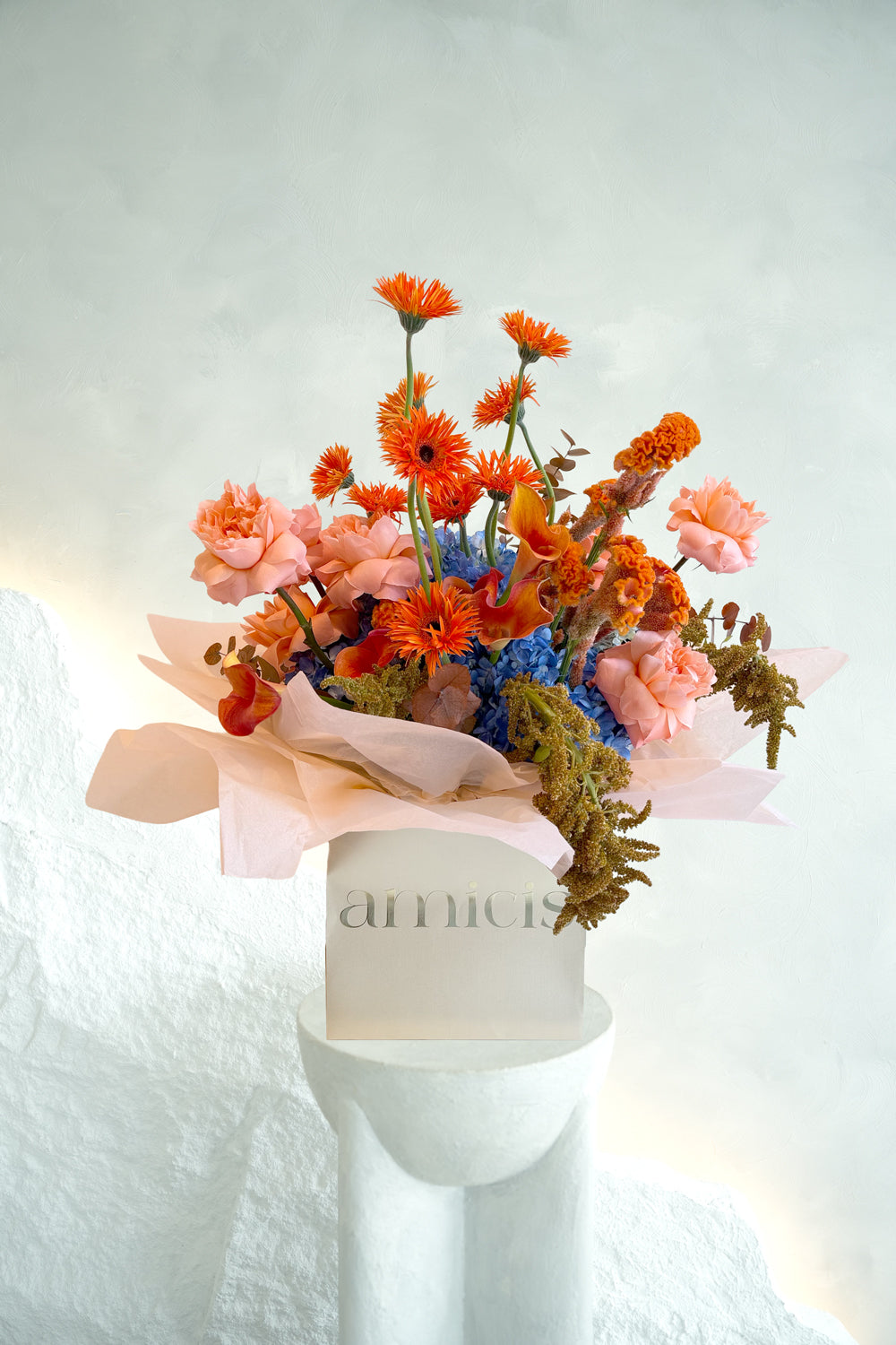 Amicis blend modern sophistication with bold, Art deco – inspired design to create one-of-a-kind floral pieces and unforgettable event experiences.